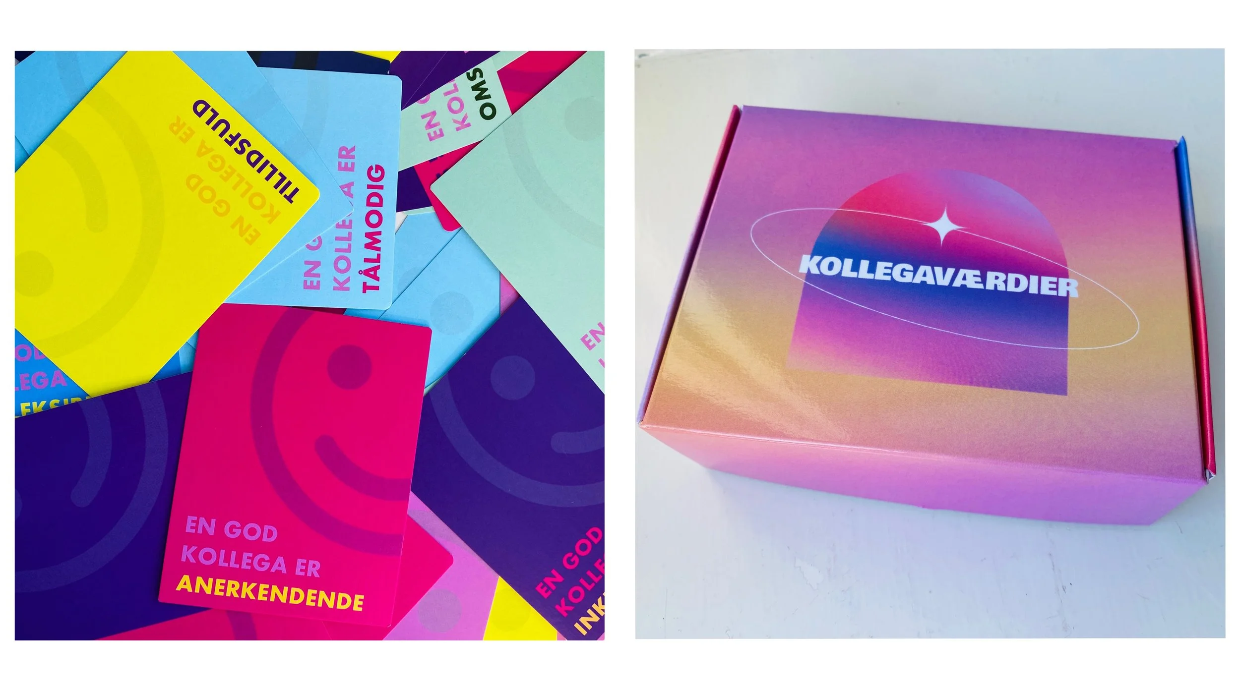 For at gøre det nemmere har vi udviklet Kollegaværdier – et sæt på 25 kort, hver med en kollegaværdi på forsiden og konkrete eksempler på bagsiden, så I kan se, hvordan værdien kan mærkes i praksis.